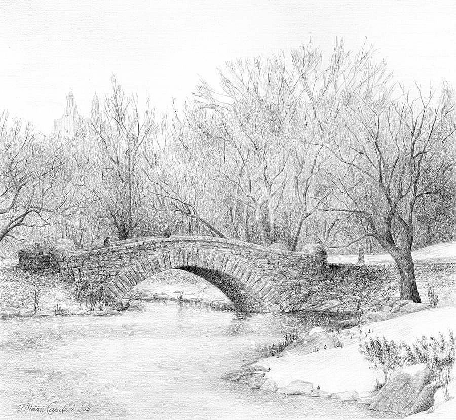 Пейзаж карандашом для срисовки