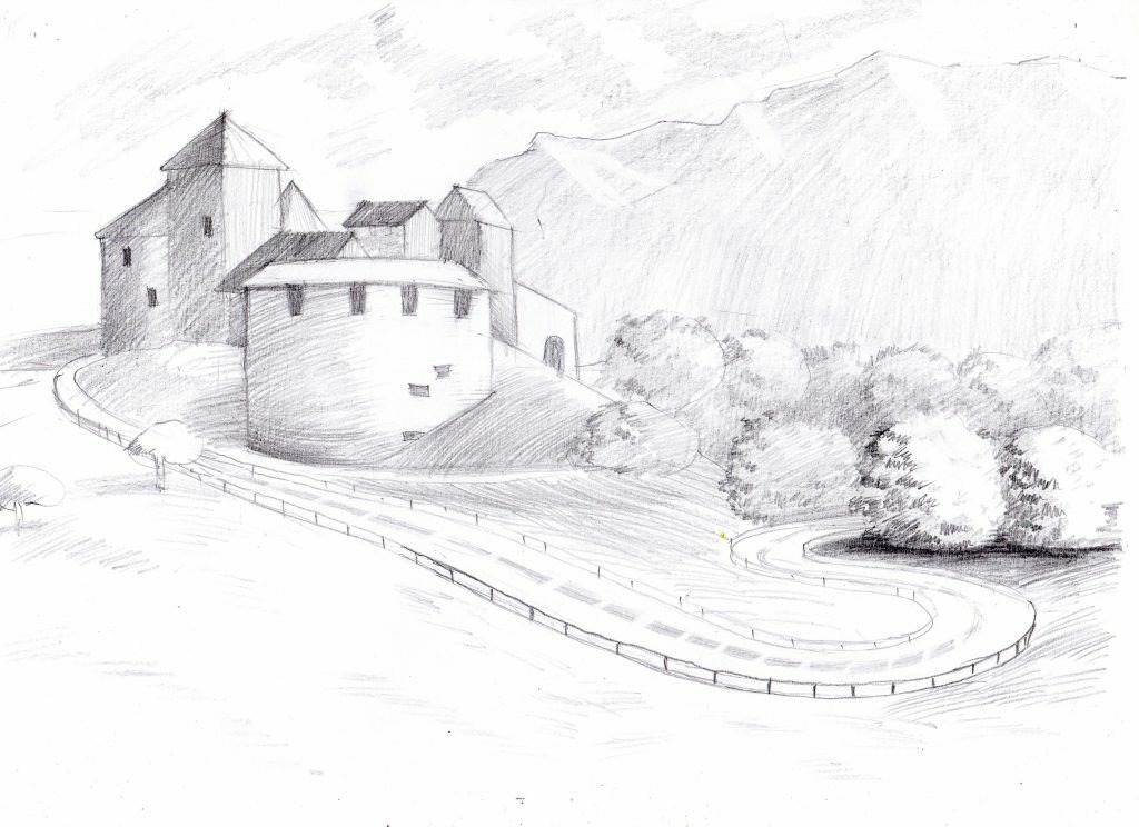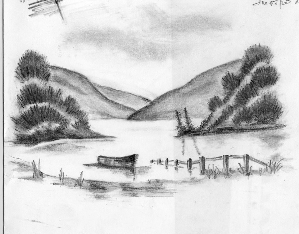Эскиз пейзажа карандашом