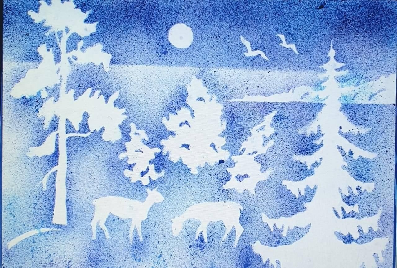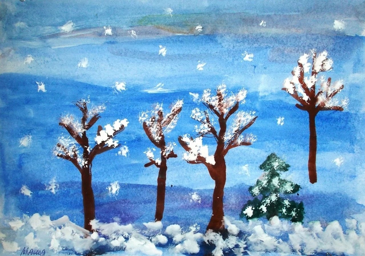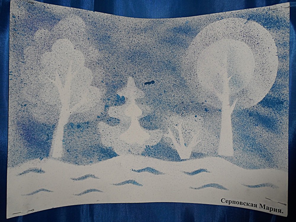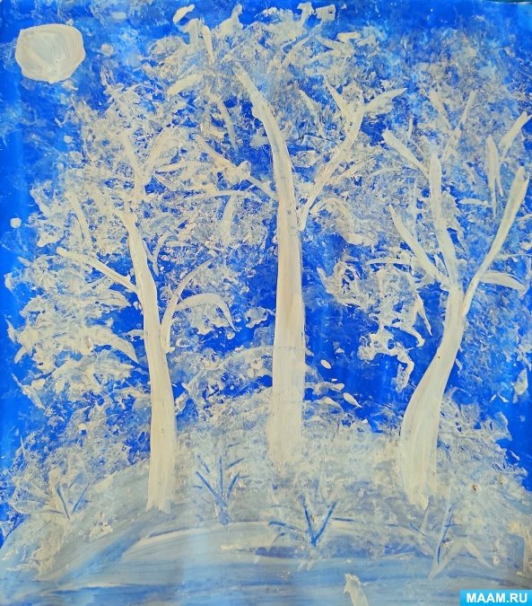 Рисование зимнего пейзажа в нетрадиционной технике рисования