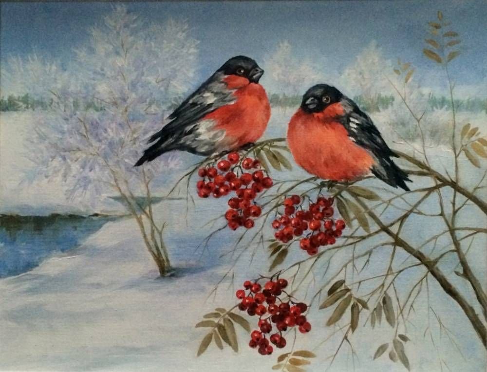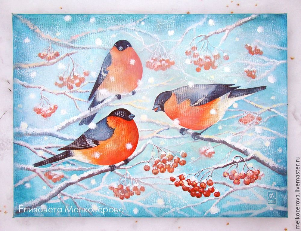 Снегири маслом Ольга Базанова