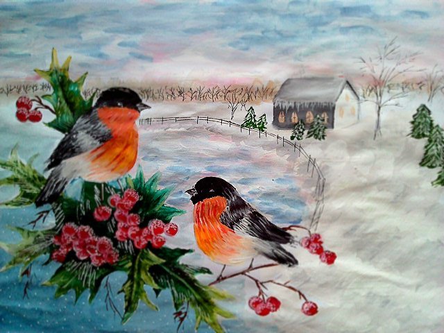 Снегирь красками