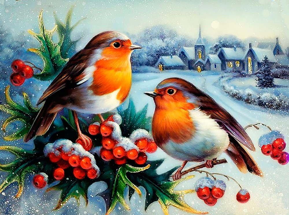 Новогодний пейзаж Снегири
