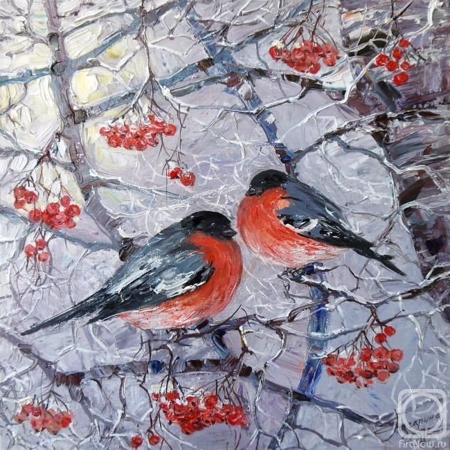 Пейзаж со снегирями