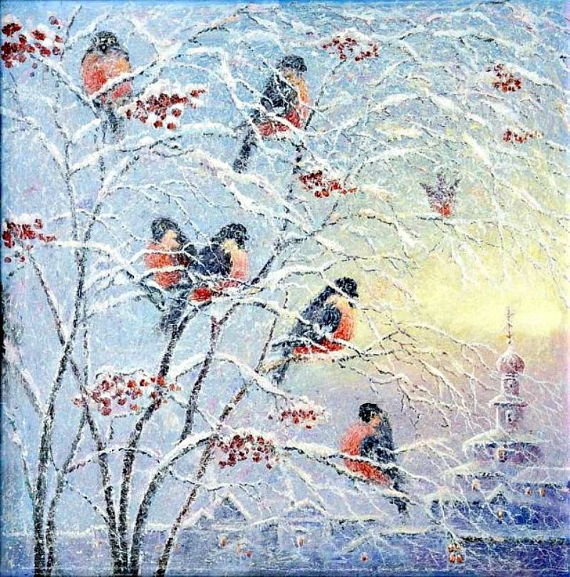 Майстренко Геннадий Снегири художник зима
