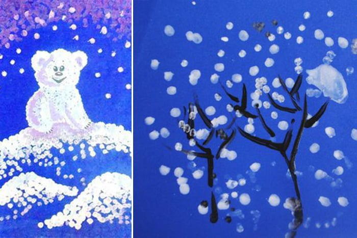 Рисование ватными палочками для детей зима
