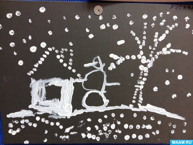 Рисование ватными палочками в старшей группе зима