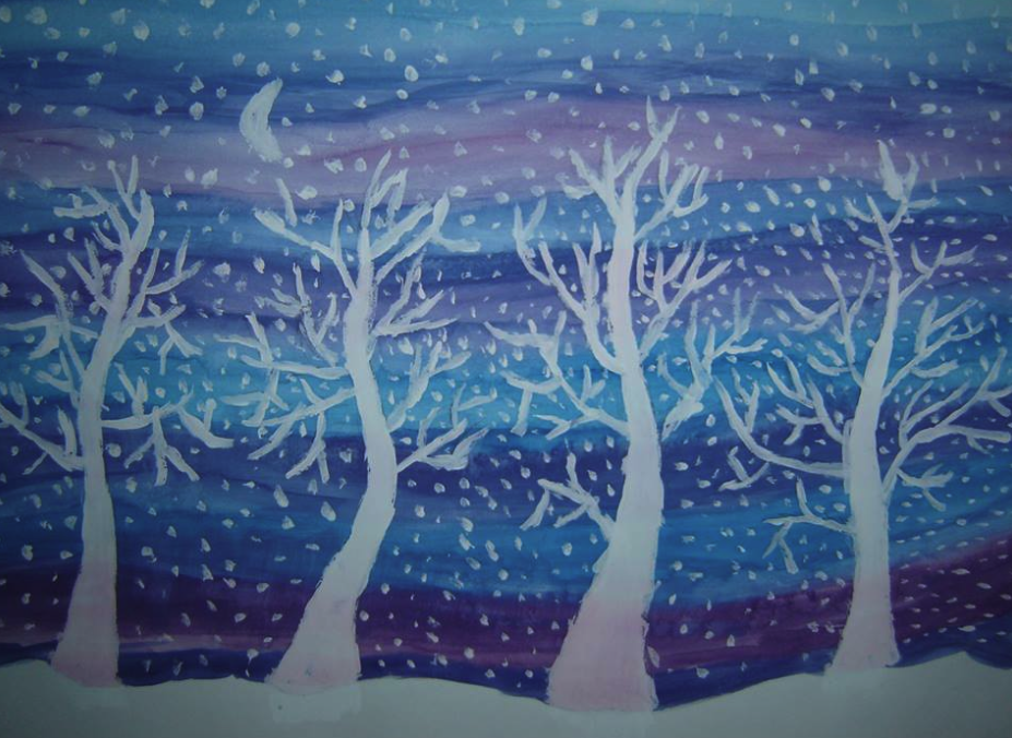 Рисование зимы красками