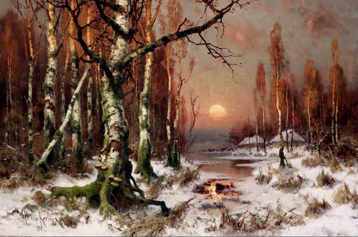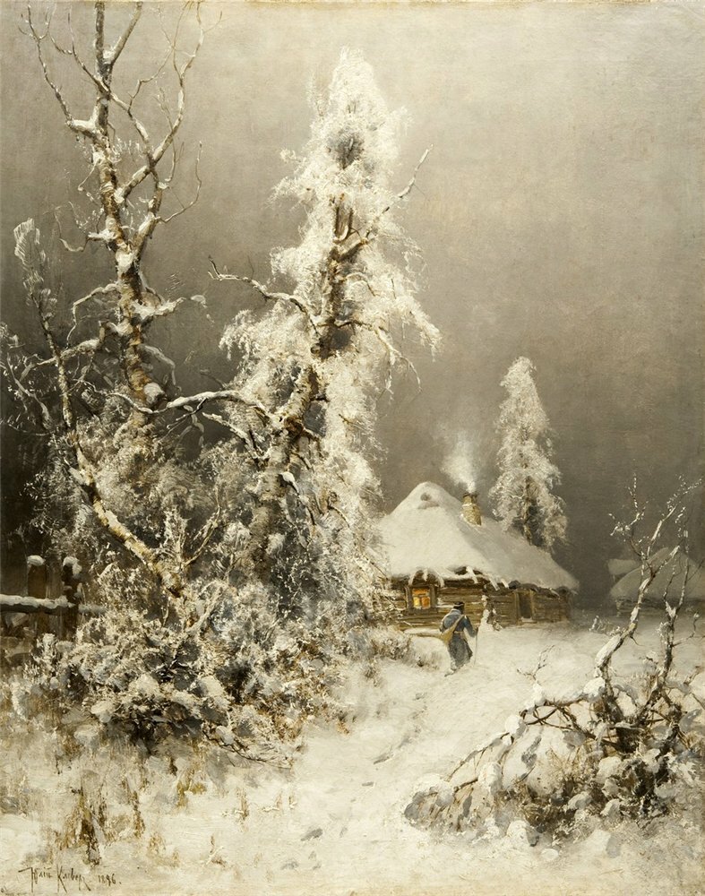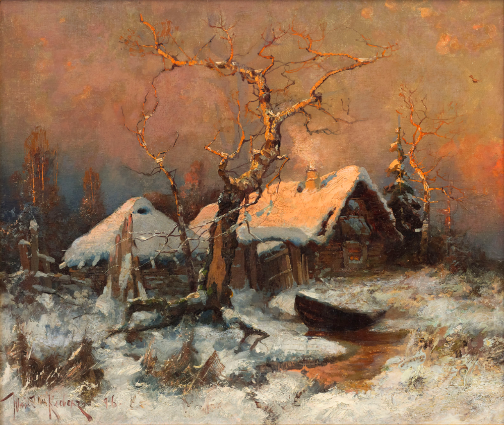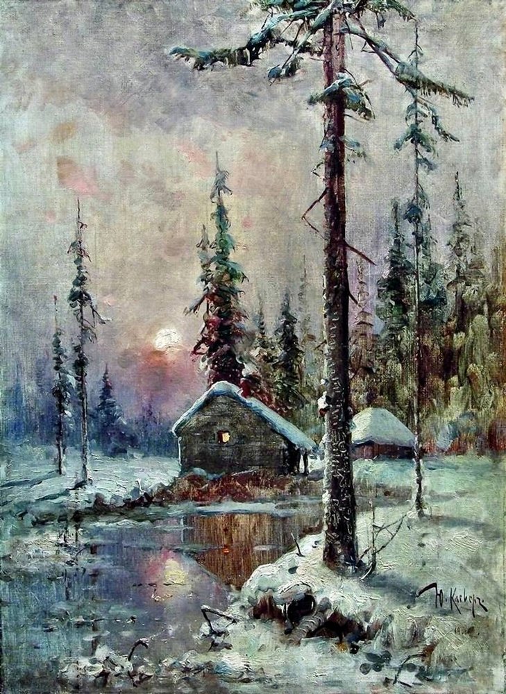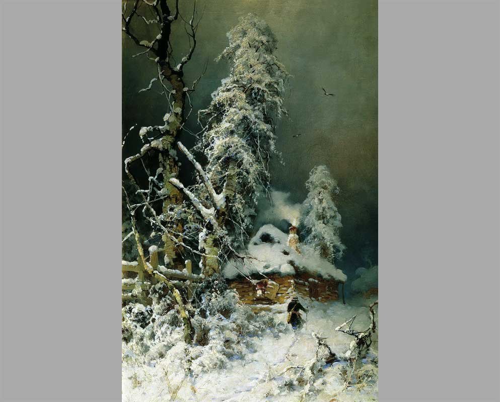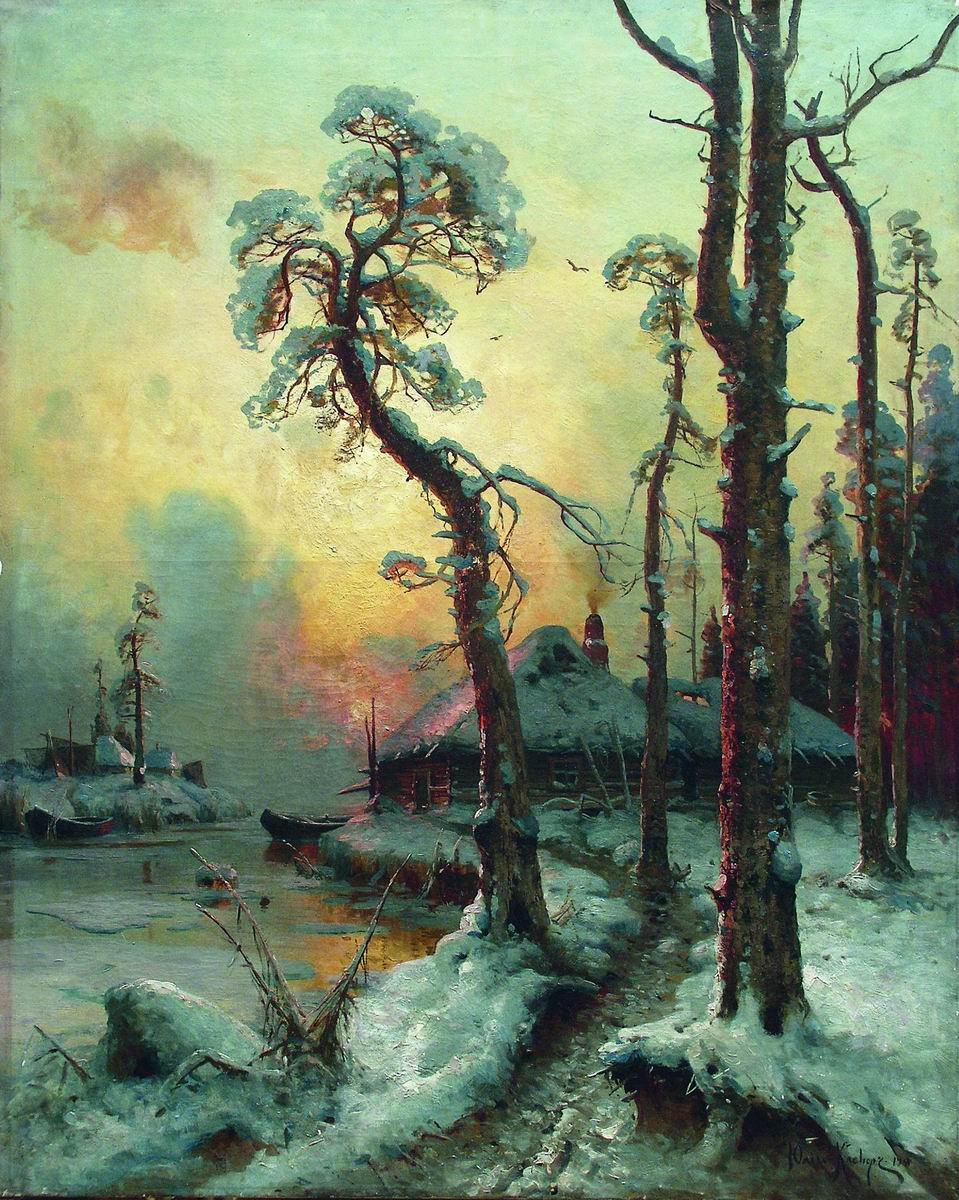 Ю. Клевер «зимний пейзаж с избушкой» 1899