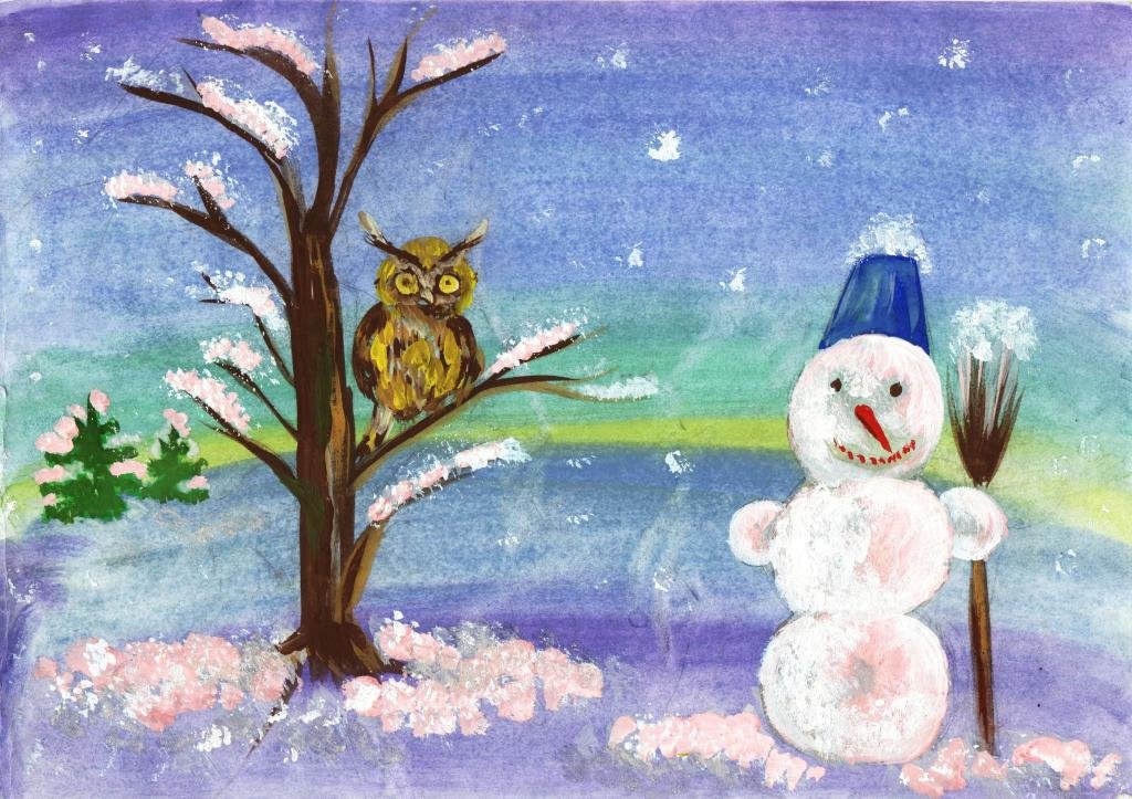 Снеговик гуашью