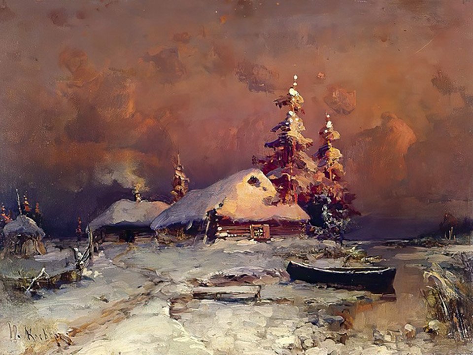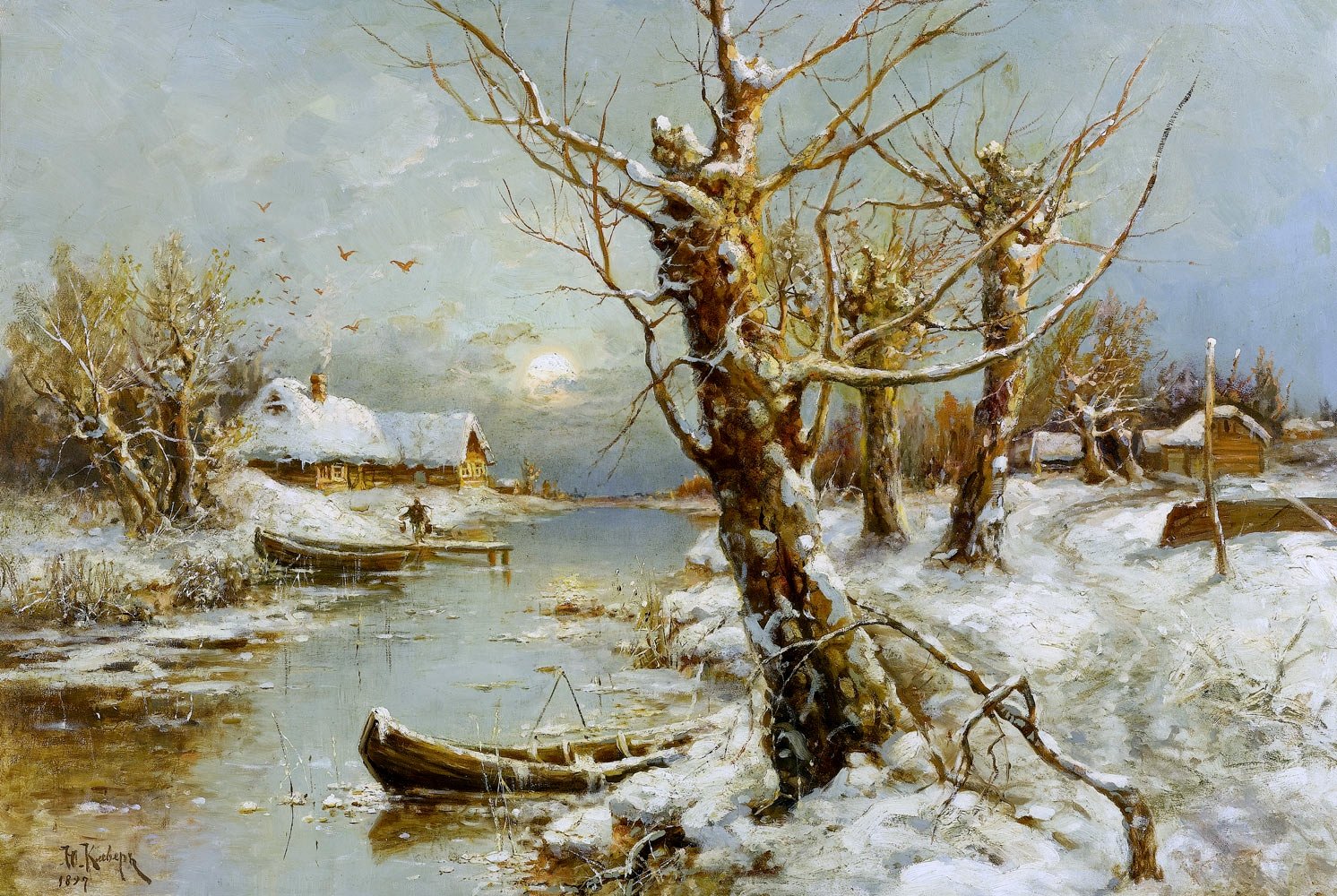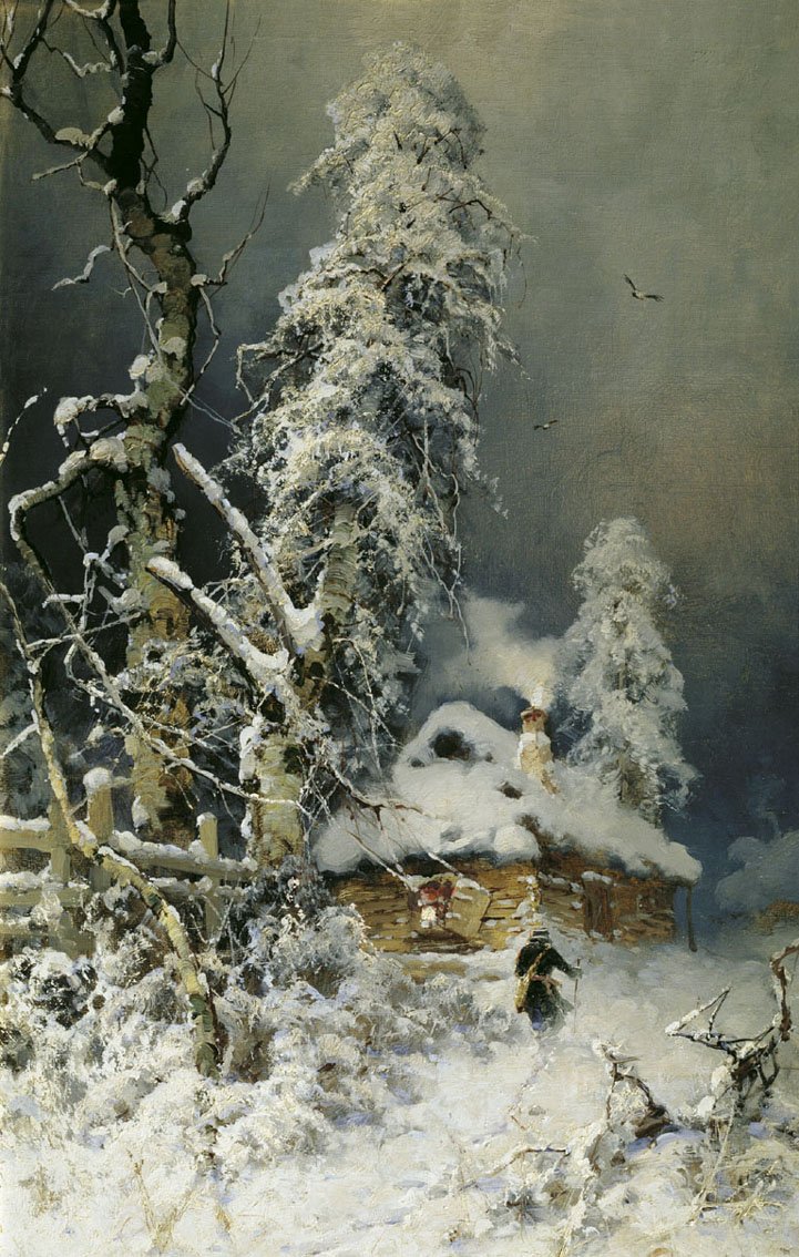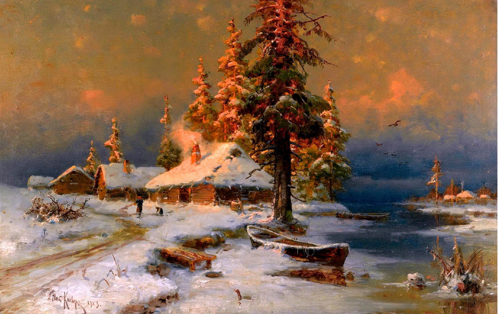 Юлий Юльевич Клевер картины "зимний вечер. Деревушка" 1897