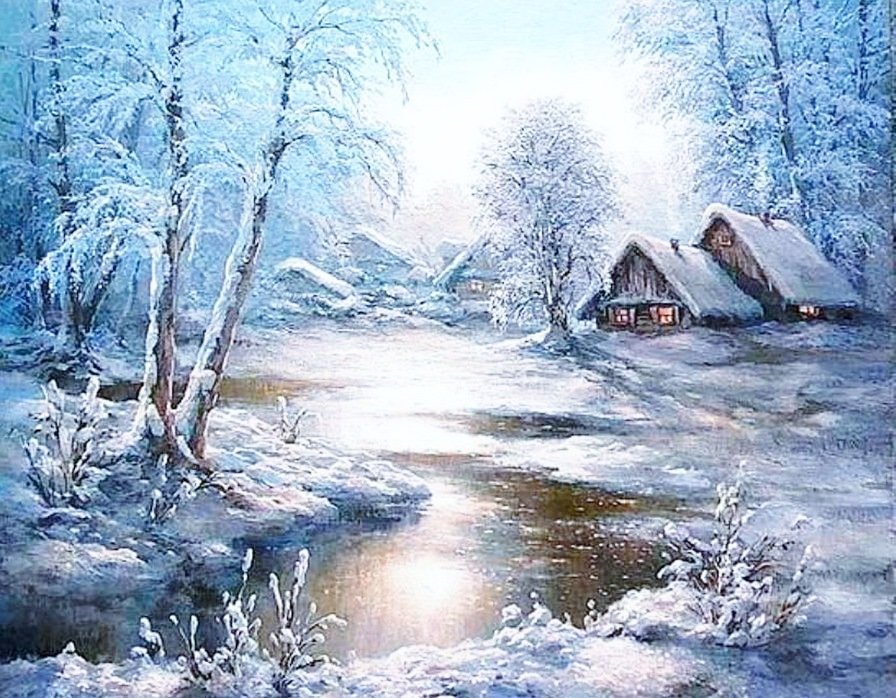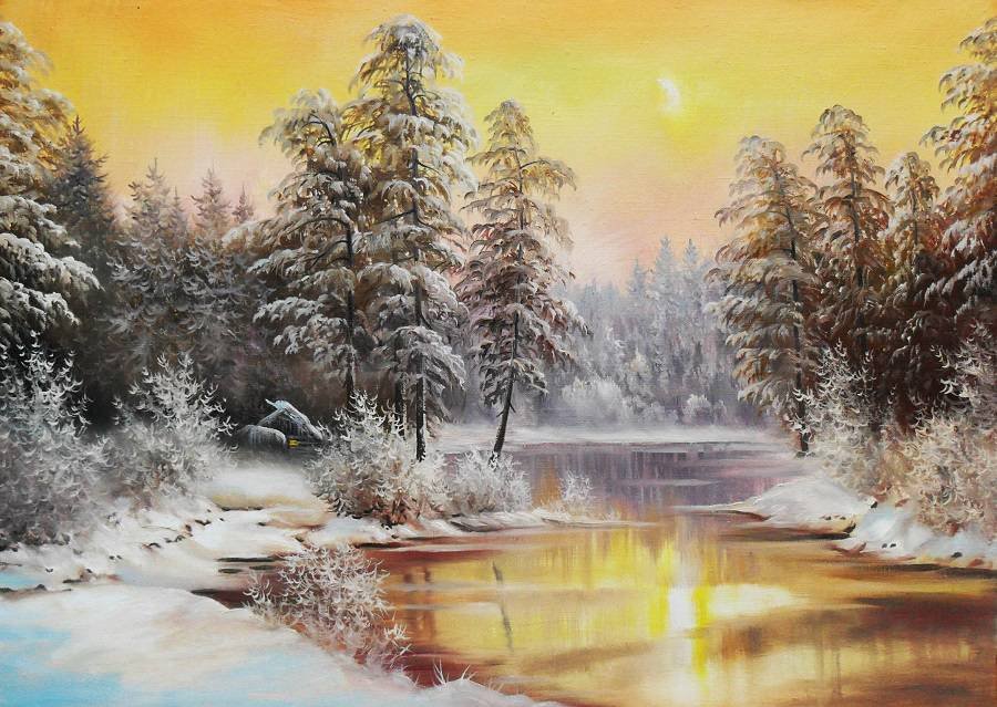 Масляная живопись зимний пейзаж