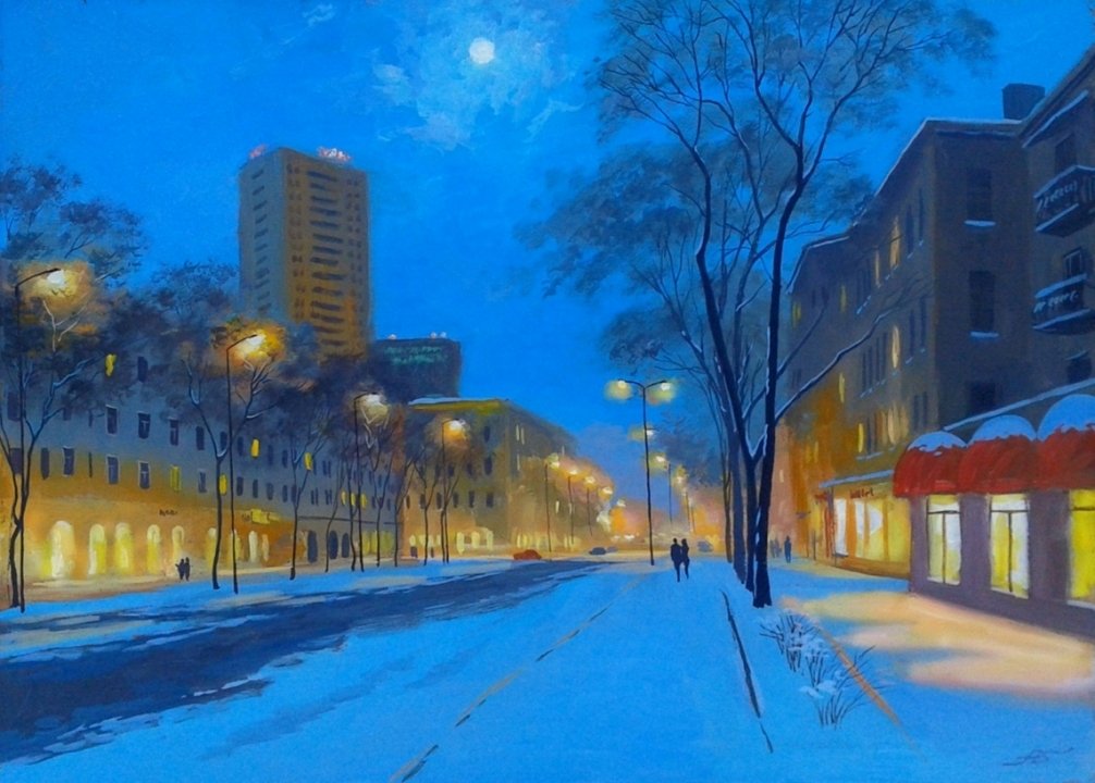 Зимний городской пейзаж – это магический и удивительно красивый вид, который заставляет нас восхищаться его неповторимостью. На картинах этого жанра художники передают атмосферу зимнего времени года с его снегопадами, инеем на деревьях и яркими огнями уличных фонарей. Они оживляют замерзшую природу, создавая чувство тишины и спокойствия. В таких работах можно увидеть типичные городские мотивы: улочки с красивой архитектурой, старинные здания, парки и скверы, а также людей, которые несмотря на холод, продолжают свою повседневную жизнь. Картины зимнего городского пейзажа вызывают умиротворение и великолепное настроение, а также позволяют нам окунуться в уникальный мир зимней красоты прямо из нашего дома или офиса.