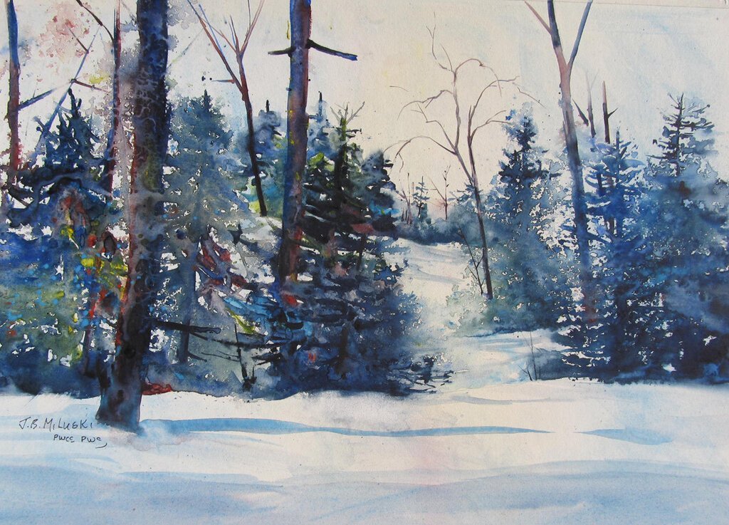 Зимний пейзаж акварелью для начинающих
