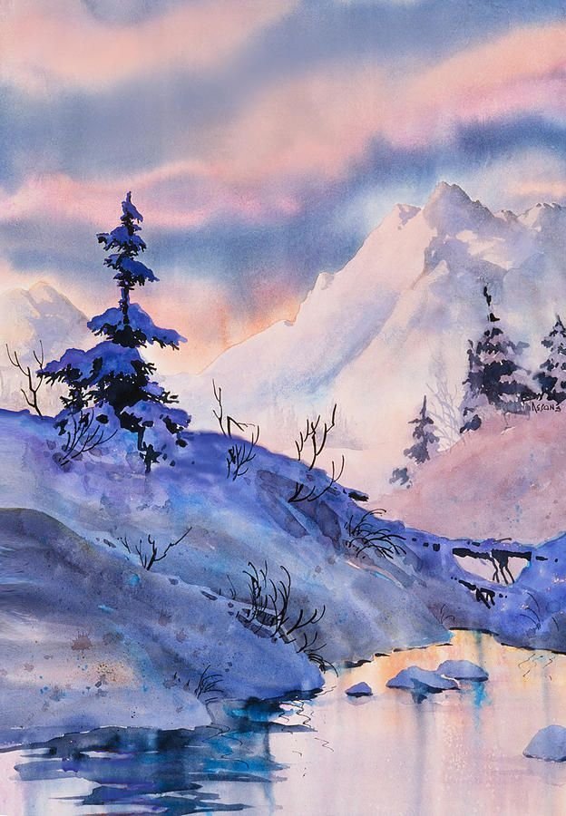 Зимние горы акварелью