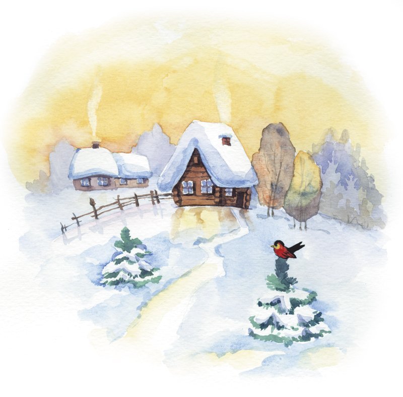 Акварельные домики зимой