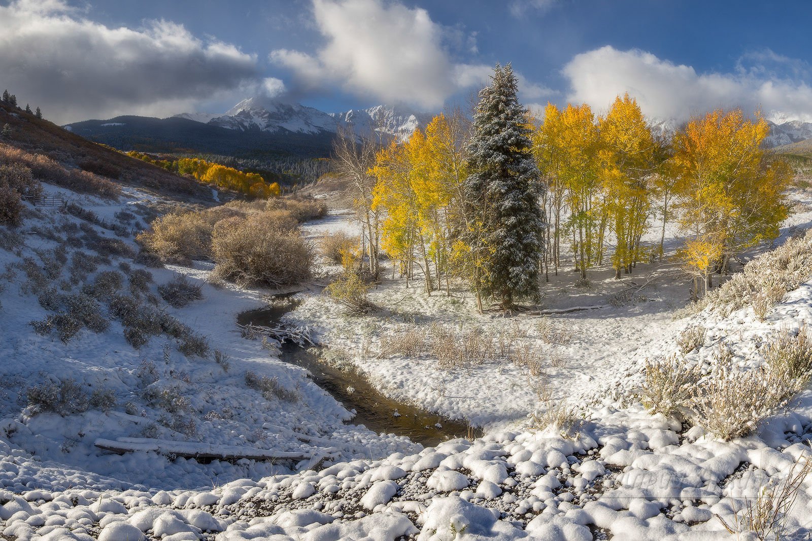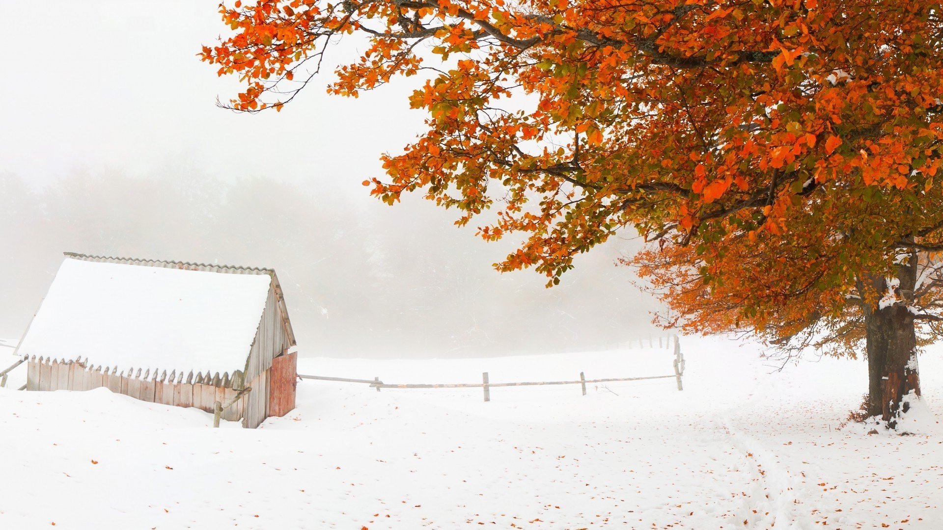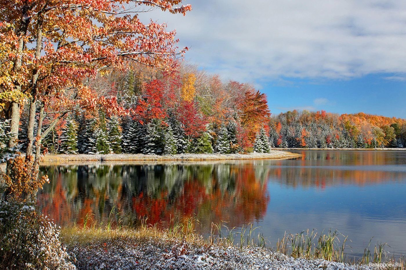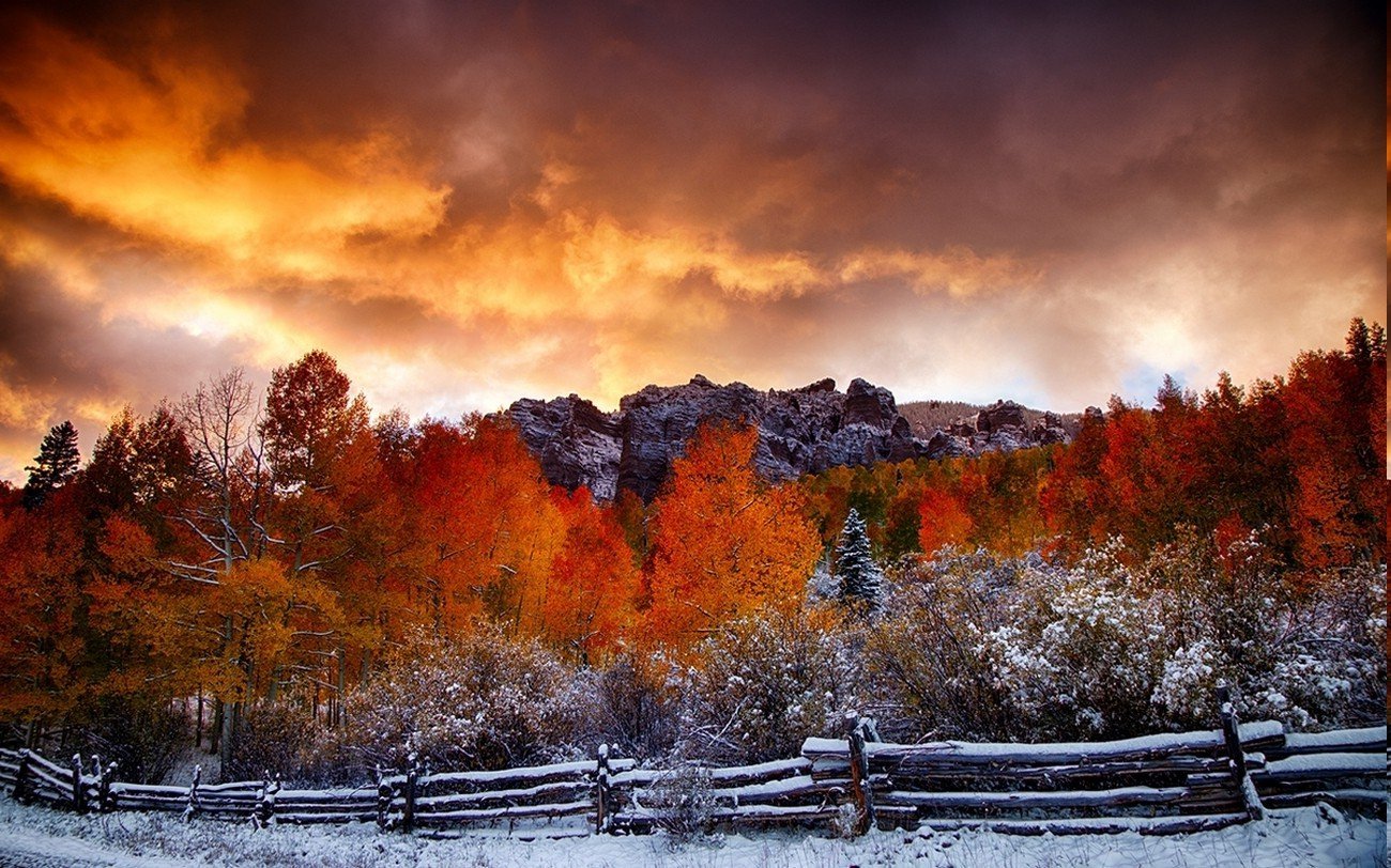 Осень солнце первый снег пейзаж