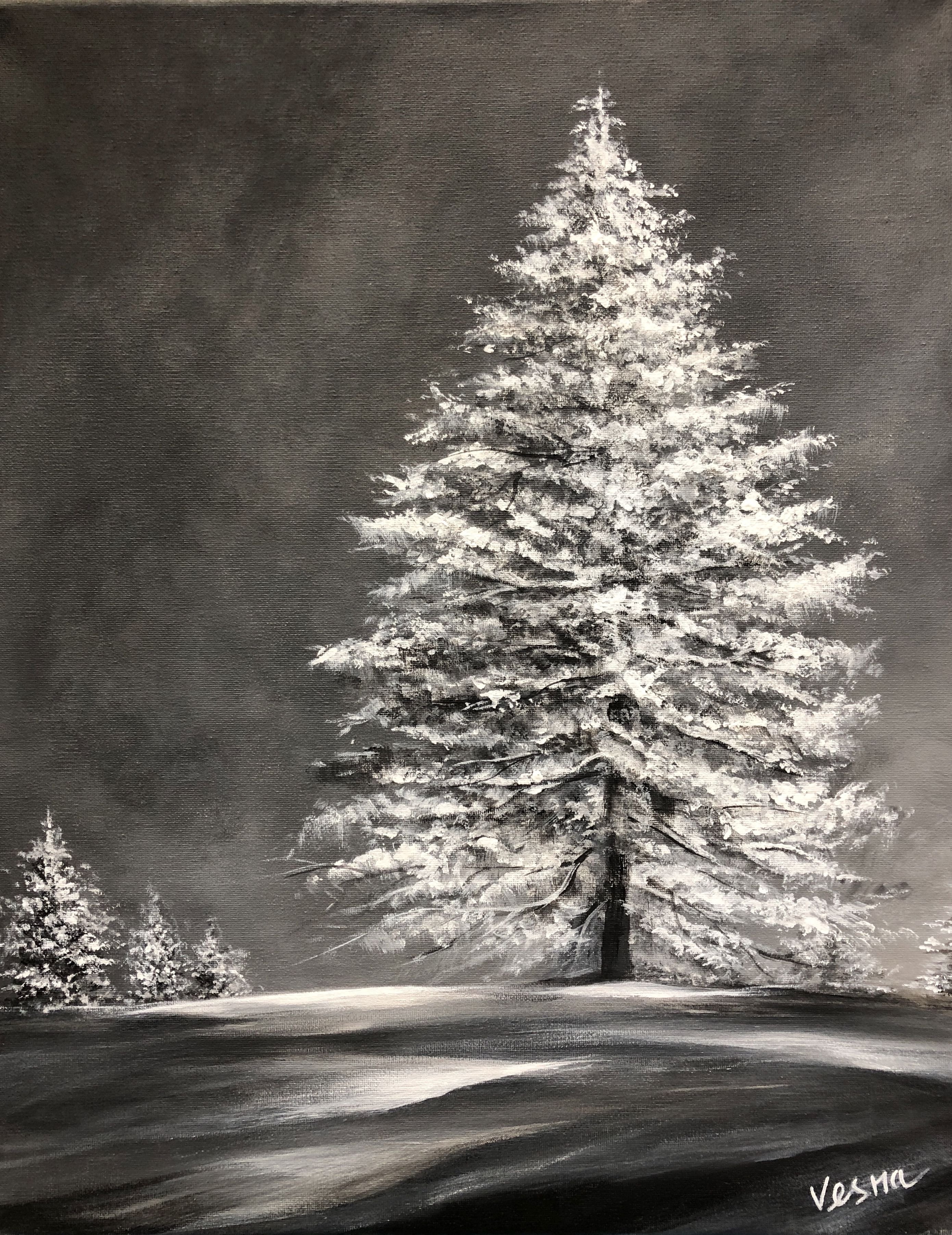 Пейзаж белой гуашью