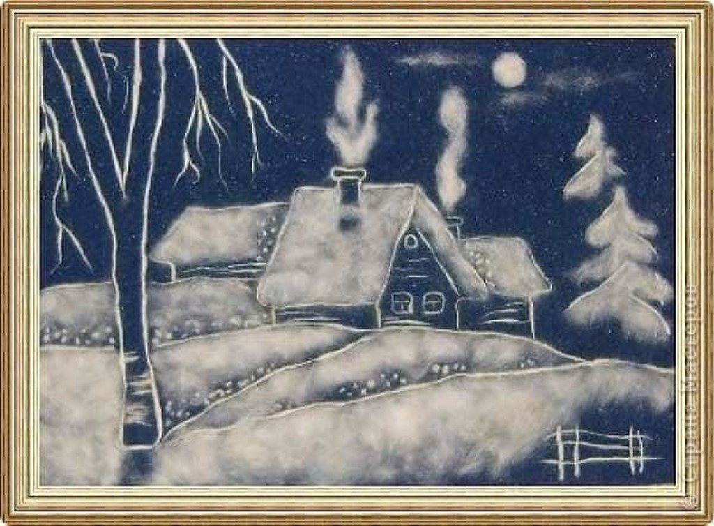Зимняя картина из ваты