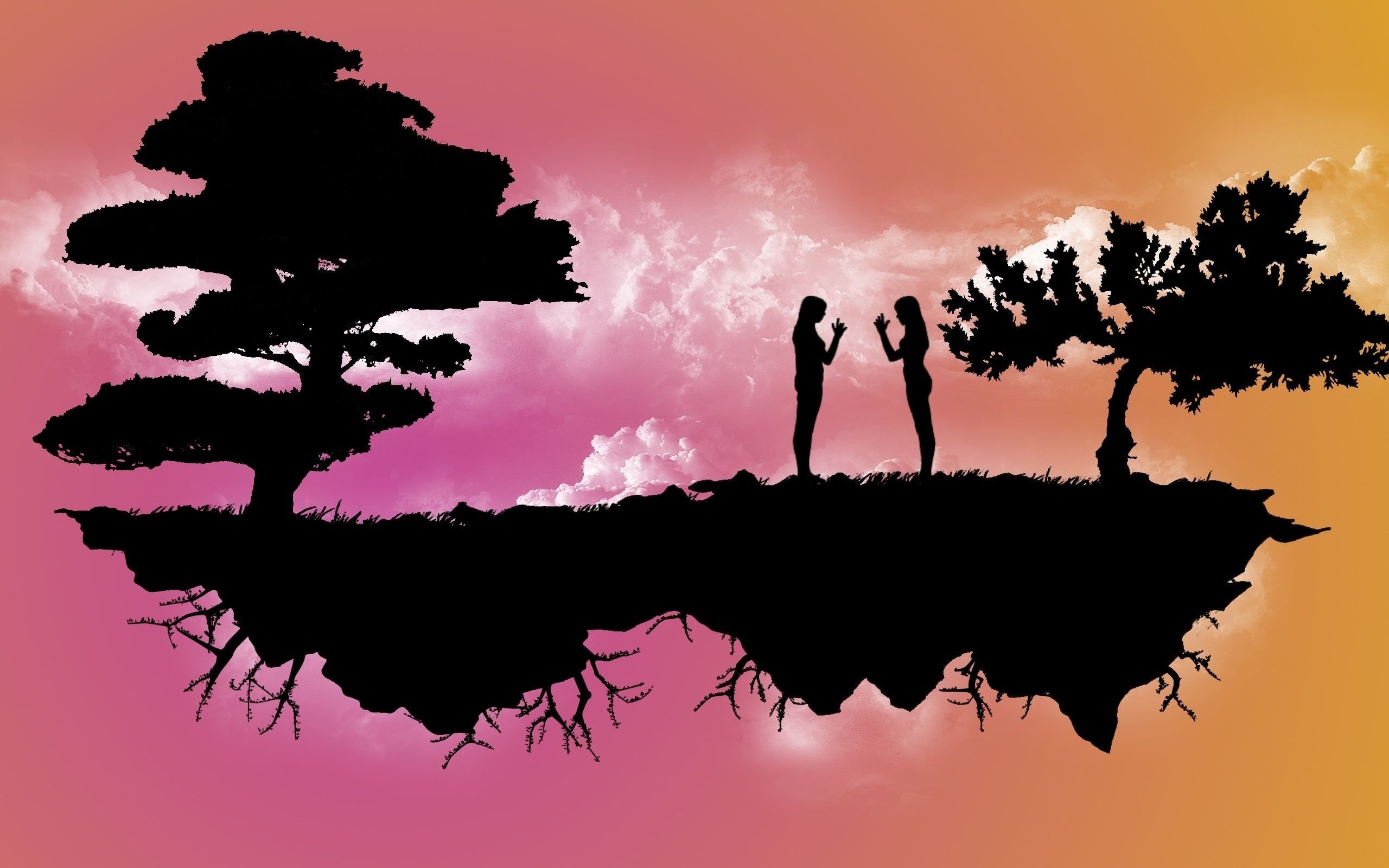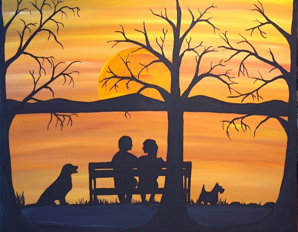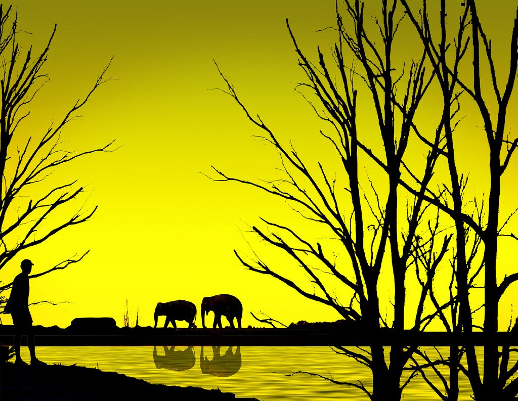 Пейзажи с черными силуэтами