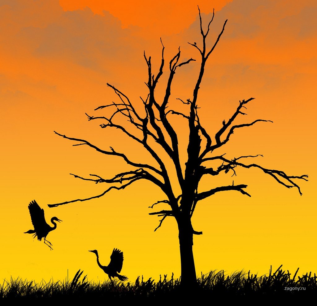 Силуэт дерева на фоне заката