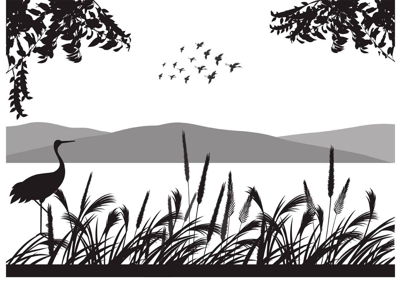 Силуэтная Графика пейзаж