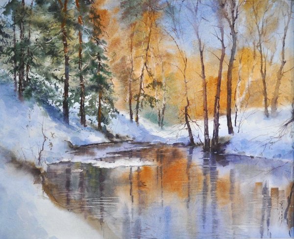 Кузнецов Михаил -акварель, зимний пейзаж