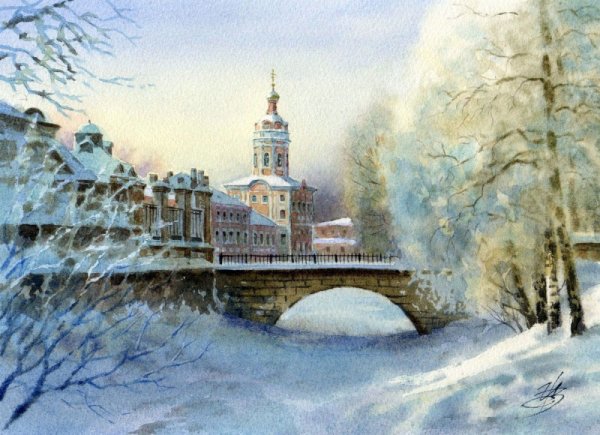Художник акварелист Татьяна Анисимова зимний пейзаж
