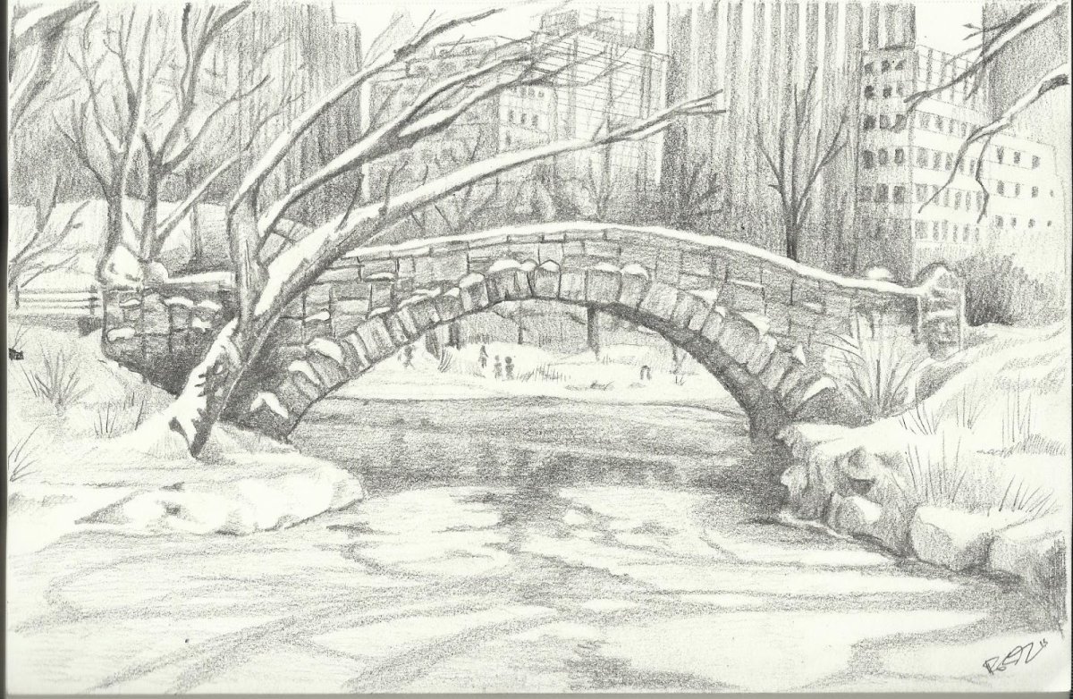 Зимний пейзаж карандашом легкий