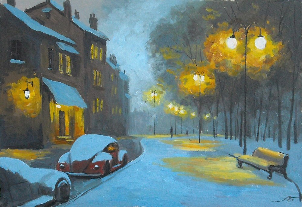 Зимний город живопись