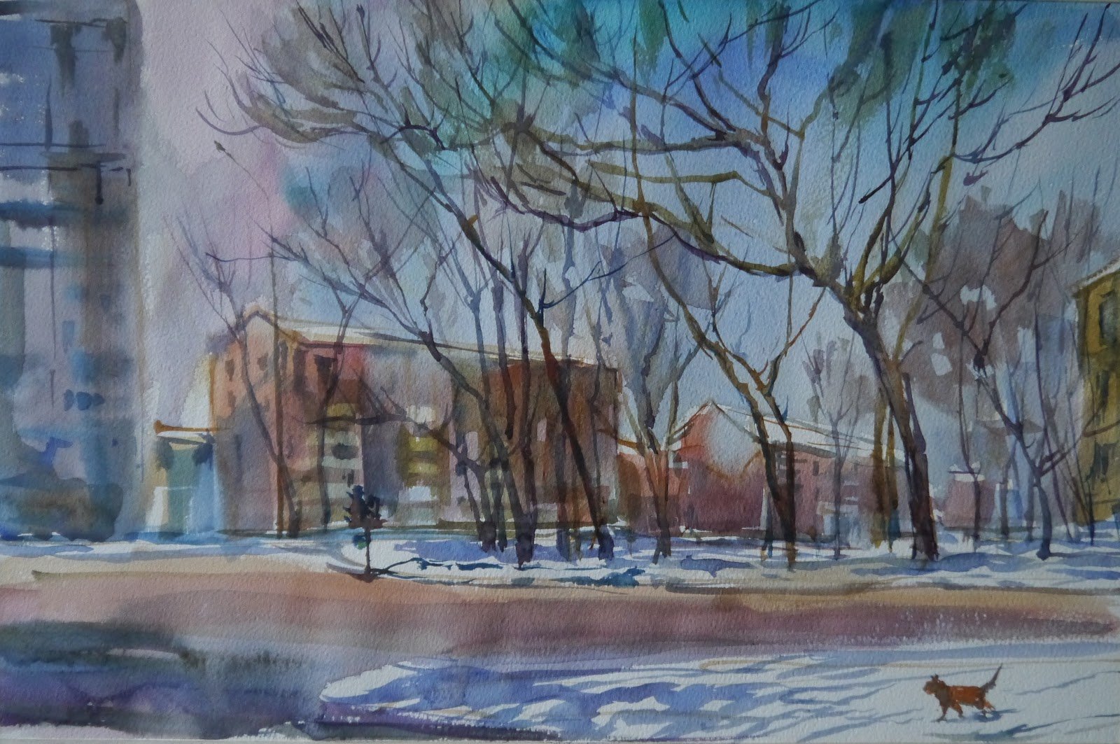 Ранняя Весна в городе акварель