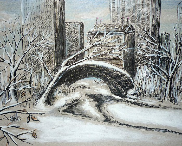 Городской зимний пейзаж Графика