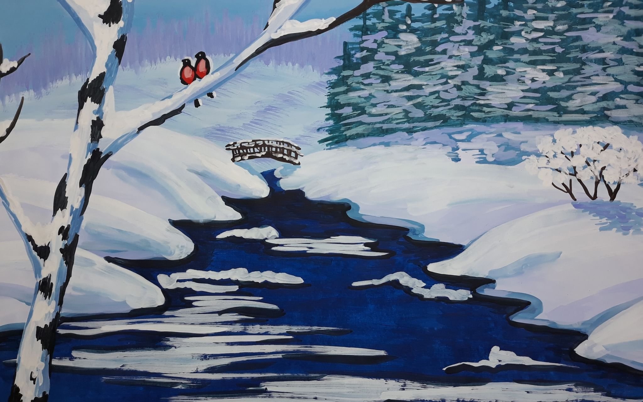 Зимний пейзаж нарисован легкими и нежными штрихами гуашью, специально для детей. Этот детский рисунок является идеальным вариантом для того, чтобы развить творческие навыки у малышей. На картине можно увидеть застывший прекрасный зимний ландшафт, с покрытыми снегом деревьями, милыми снеговиками и играющими детьми на склонах горы. Каждая деталь на этой картины выполнена с любовью и заботой, чтобы каждый ребенок получил радость от ее создания и восприятия. Этот зимний пейзаж станет прекрасным дополнением к интерьеру детской комнаты или подарком для близкого ребенка.