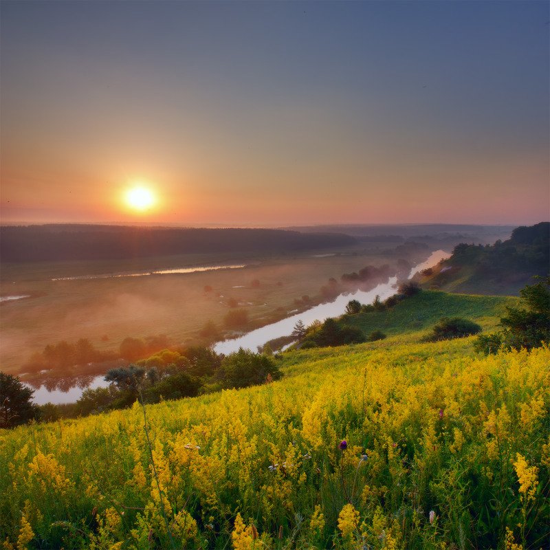 Подсолнухи поле река Дон
