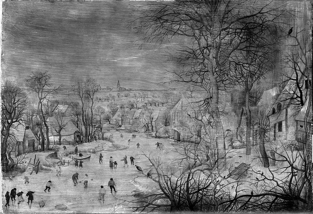 Питер брейгель младший зимний пейзаж с конькобежцами