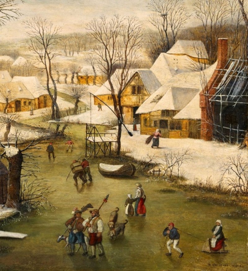 Хендрик Аверкамп «зимний пейзаж с конькобежцами» 1609