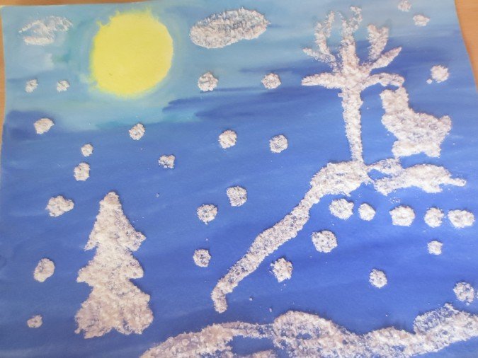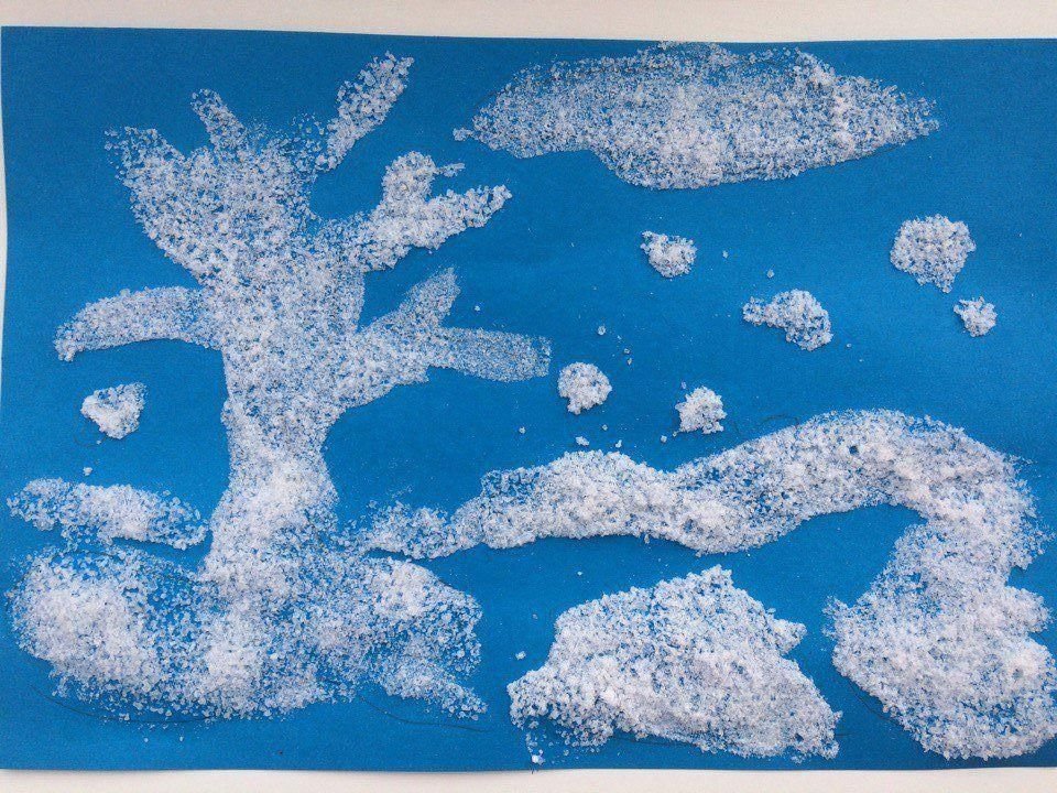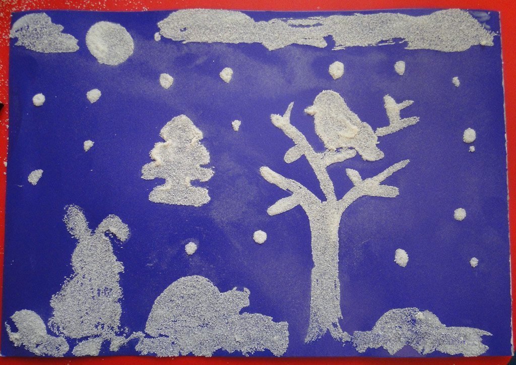 Рисование солью и клеем зимний пейзаж