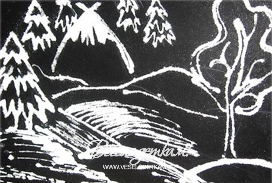 Рисование зимнего пейзажа в нетрадиционной технике рисования