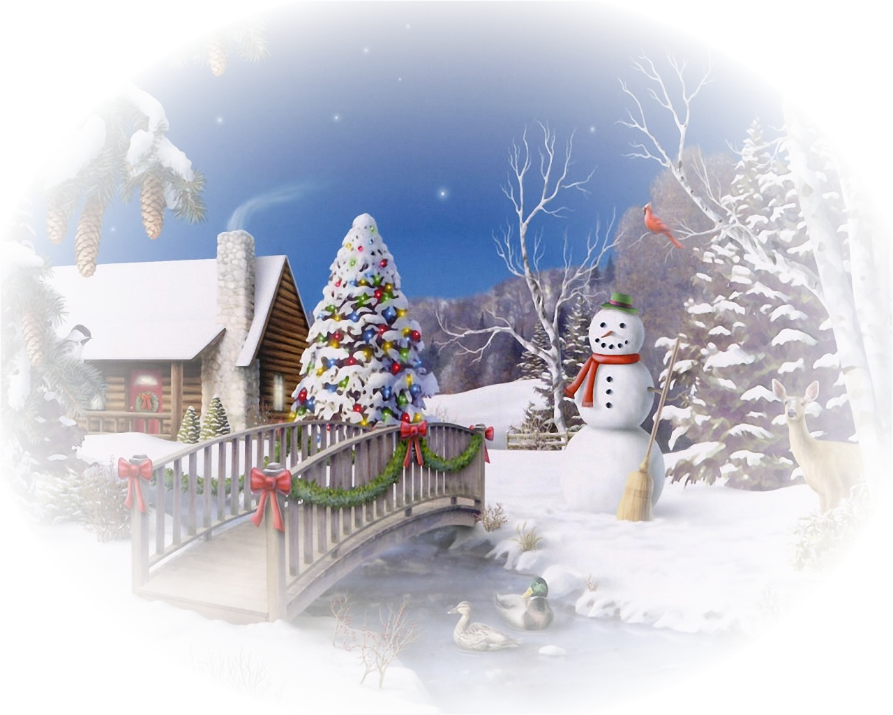 Зимний пейзаж для фотошопа на прозрачном фоне