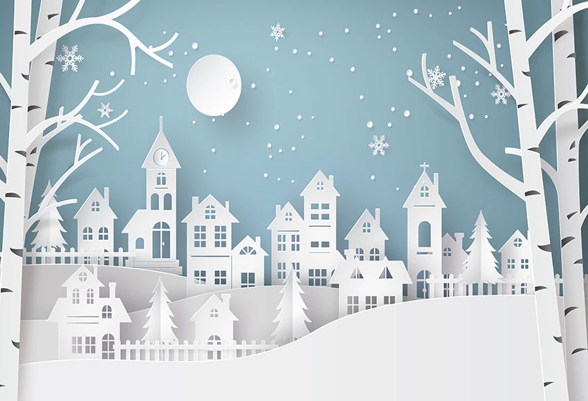 Зимний город из белой бумаги