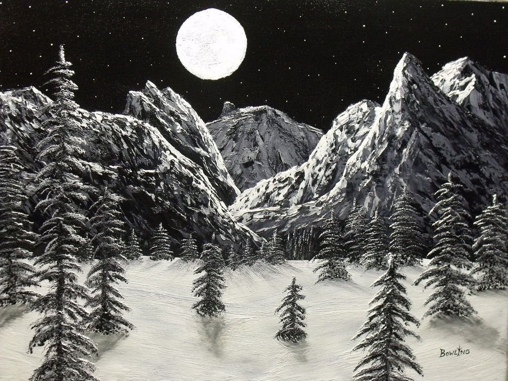 Рисование зимняя ночь
