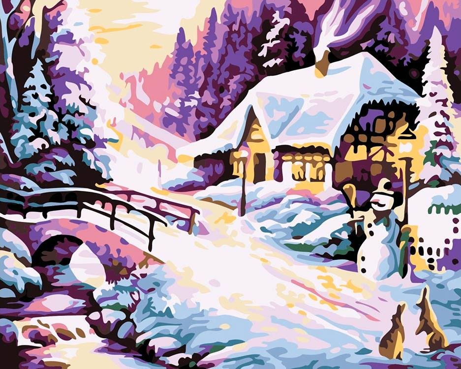 Зимний пейзаж красками