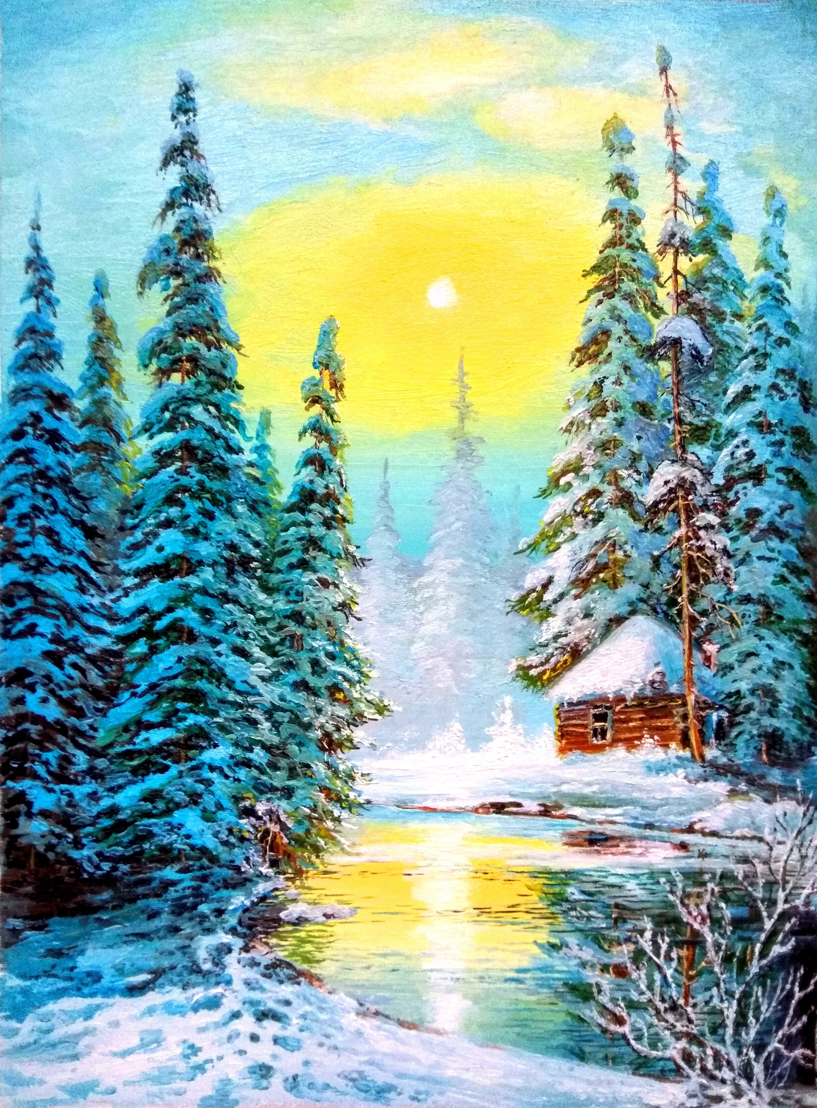 Зимний пейзаж маслом на холсте