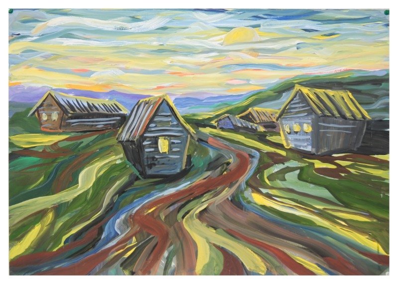 Пейзаж гуашью