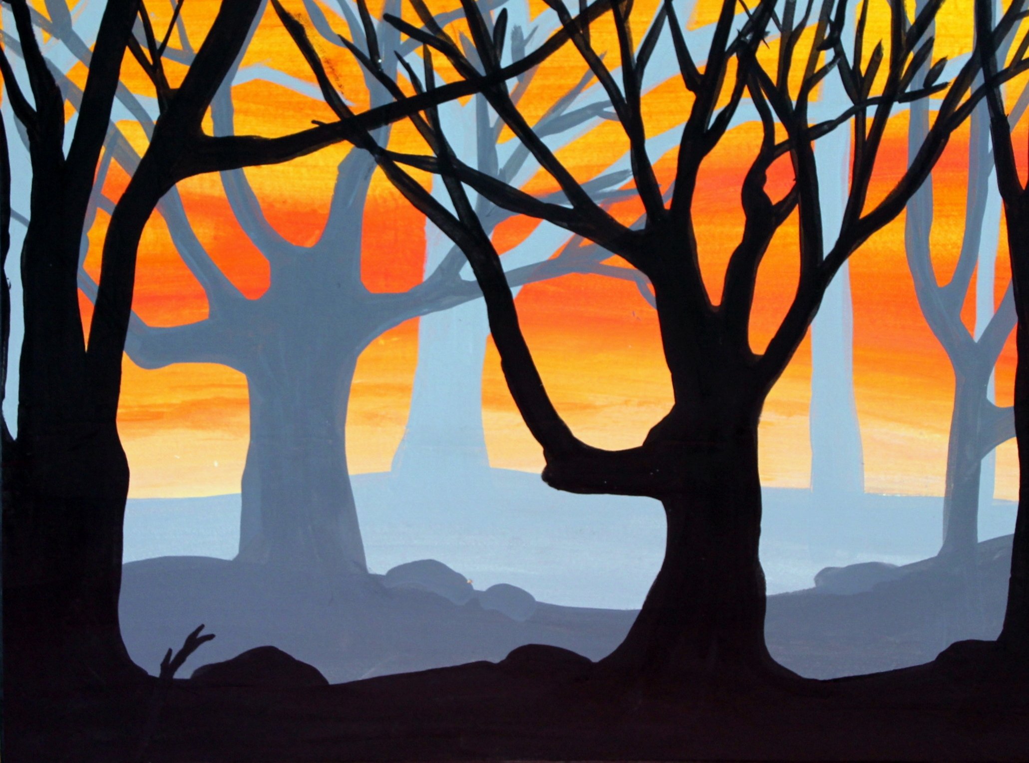 Декоративный пейзаж гуашью
