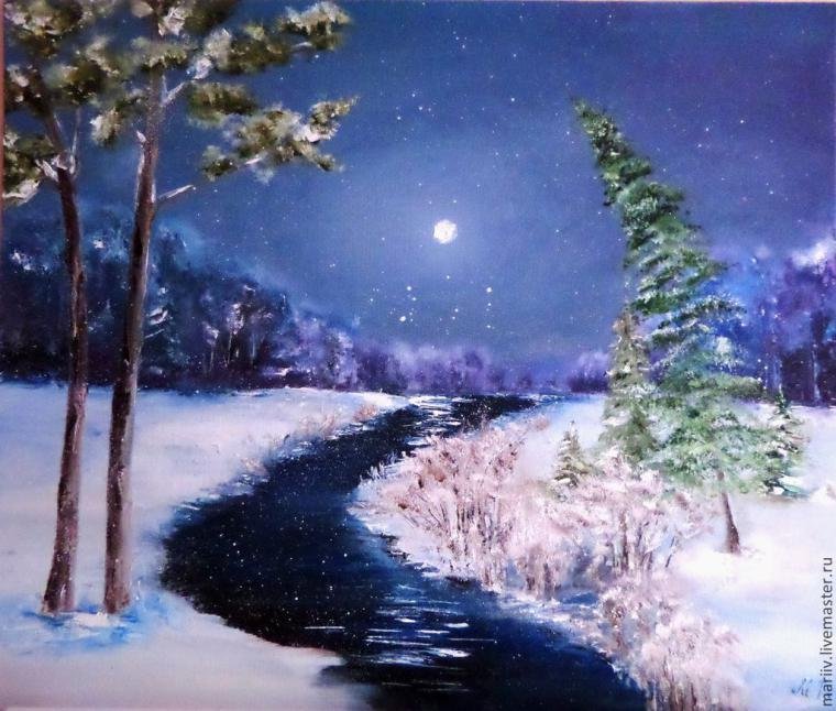 Зимний ночной пейзаж – это захватывающая картина, которая воплощает в себе холод и спокойствие зимней ночи. Живописные образы заснеженных лесов, замерзших рек и озер, а также ярких звезд на темном небе притягивают взгляд и создают особую атмосферу загадки и таинства. Эта живопись не только показывает красоту природы, но и передает эмоции, вызывая чувство умиротворения и восхищения. Зимний ночной пейзаж – это настоящая сказка, которая приносит радость и восторг своими уникальными образами.