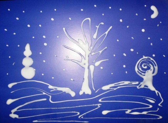 Зимний пейзаж из клея и соли