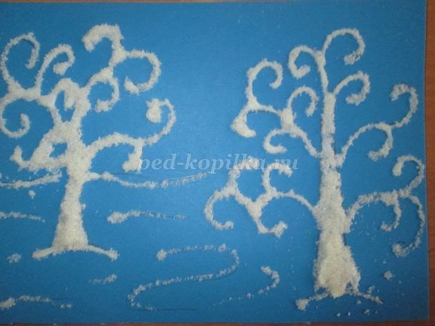 Рисование солью и клеем зимний пейзаж