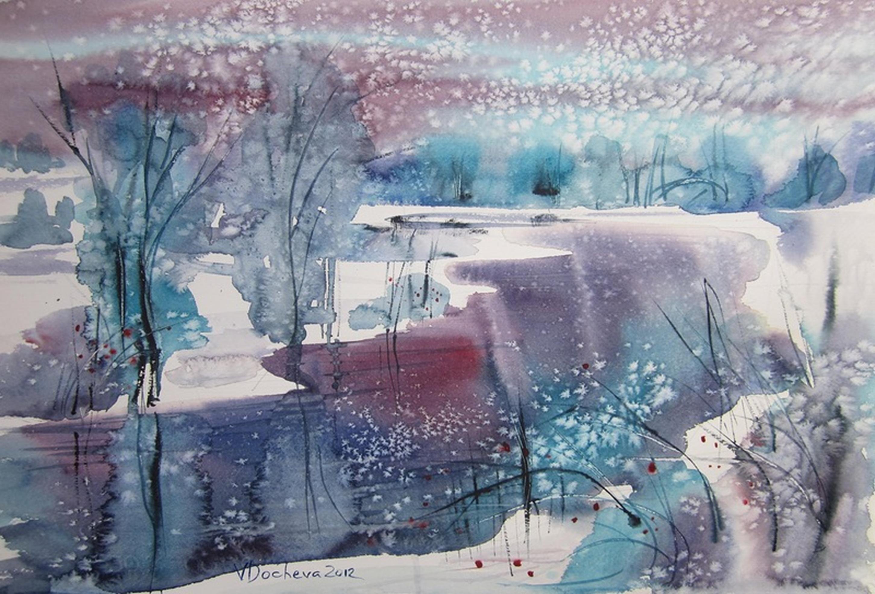 Зимний пейзаж акварелью для детей