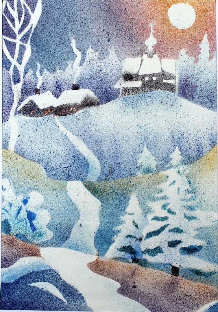 Рисование зимнего пейзажа в нетрадиционной технике рисования