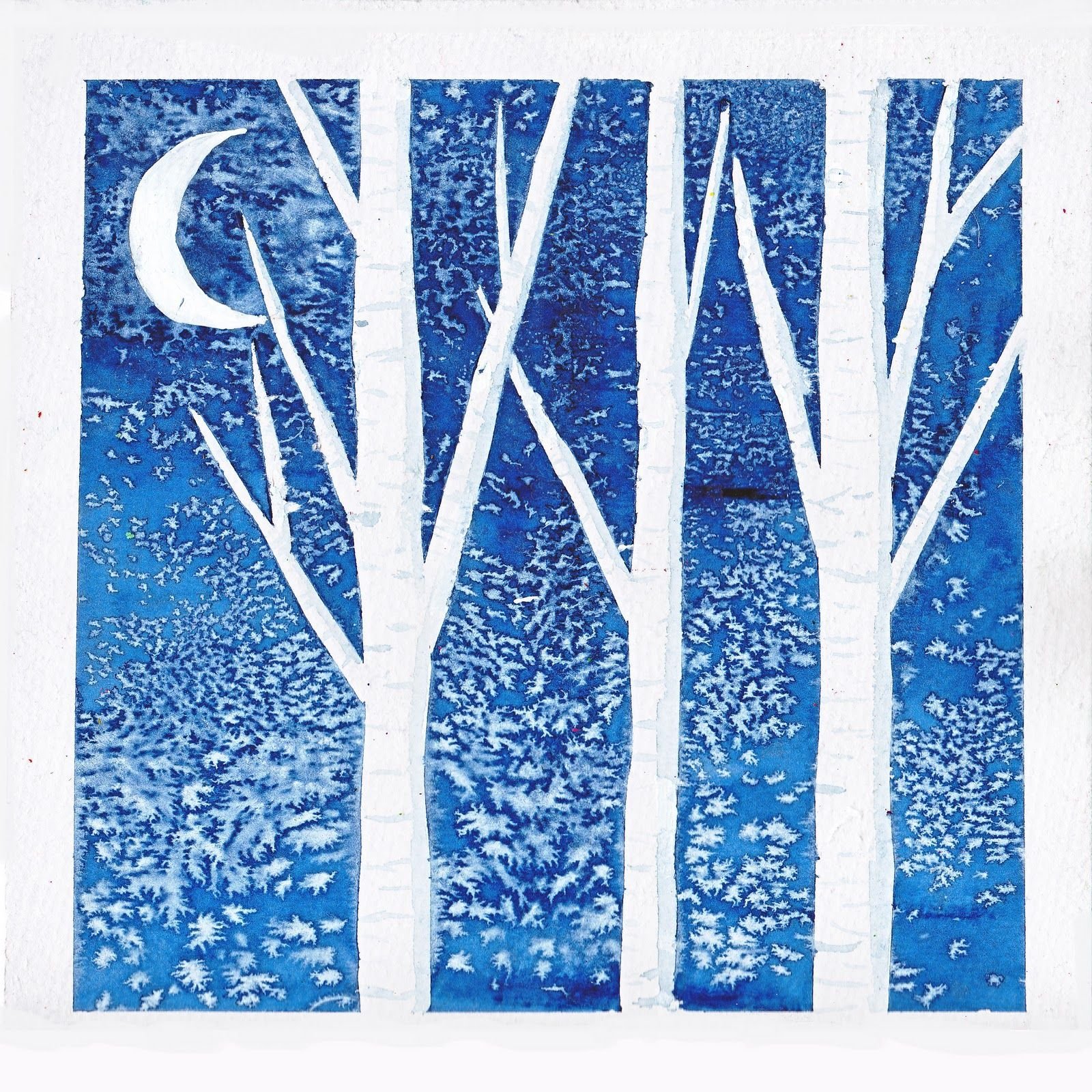 Зимний пейзаж акварелью и солью
